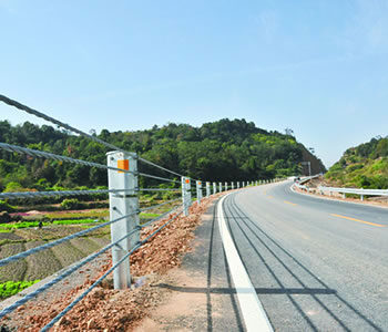 缆索香蕉视频APP在线是柔性香蕉视频APP在线的主要代表形式,它是一种以数根施加初张力的缆索固定于立柱上而组成的结构,它主要依靠缆索的拉应力来抵抗车辆的碰撞,吸收碰撞能量。